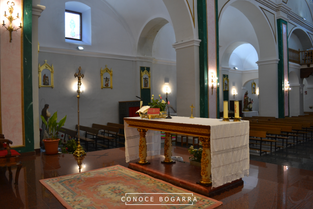 El campanario se encuentra dividido de la nave principal, unida a esta por un arco, el cual pasa por el límite entre la calle San Blas y la calle Citara.